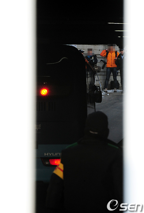 배우 김성민의 필로폰 상습 투약 혐의에 대한 첫 공판을 앞두고 취재진이 수송차량을 바라보고 있다. /sunday@osen.co.kr