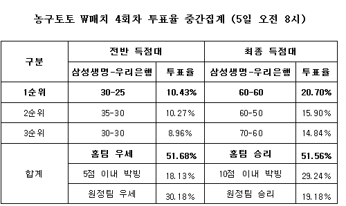 2010-2011 시즌 농구토토 W매치 4회차 투표율 중간집계 결과