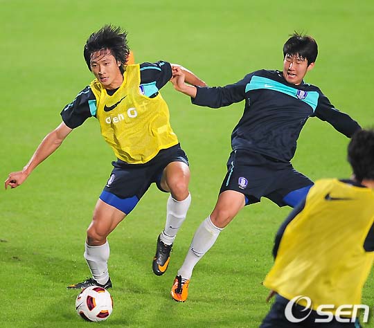 미니게임중 곽태휘와 손흥민이 볼다툼을 하고 있다. /rumi@osen.co.kr