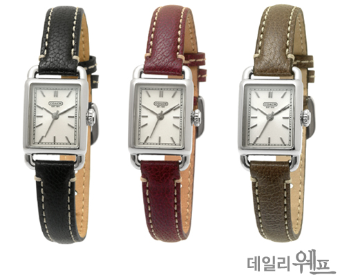 슬림한 가죽 밴드와 사각 프레임이 조화를 이뤄 코치의 모던한 디자인이 돋보이는 코치의 여성시계. 직사각형의 클래식한 디자인의 케이스가 최근 유행하는 빈티지한 감성과 조화를 이뤄 눈길이 간다.
