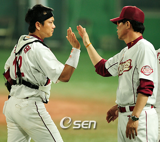 하지만 강귀태가 대화 주제로 바뀌자 김 감독의 언성이 낮게 깔렸다. 강귀태는 넥센의 주전 포수. 히어로즈가 창단한 2008시즌부터 안방을 책임지고 있다.