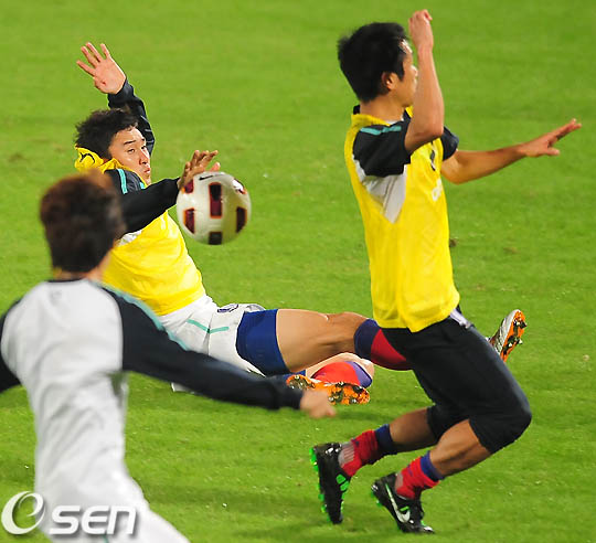 조광래 감독이 이끄는 2011 카타르 아시안컵 한국 축국대표팀이 9일 새벽(한국시간) 카타르 도하에 위치한 알 와크라 경기장에서 바레인과의 첫 경기를 앞두고 훈련을 가졌다.