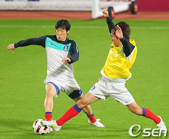 조광래 감독이 이끄는 2011 카타르 아시안컵 한국 축국대표팀이 9일 새벽(한국시간) 카타르 도하에 위치한 알 와크라 경기장에서 바레인과의 첫 경기를 앞두고 훈련을 가졌다.