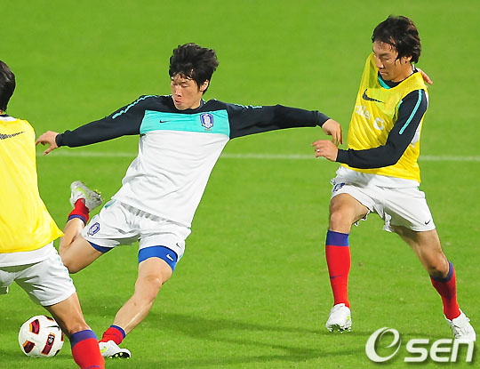 조광래 감독이 이끄는 2011 카타르 아시안컵 한국 축국대표팀이 9일 새벽(한국시간) 카타르 도하에 위치한 알 와크라 경기장에서 바레인과의 첫 경기를 앞두고 훈련을 가졌다.