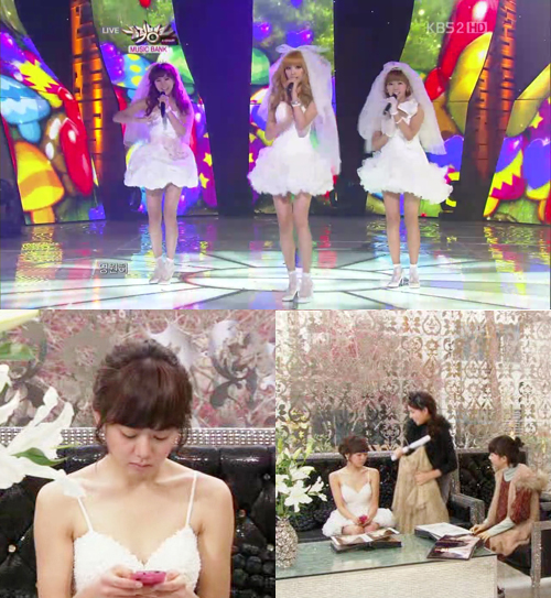 오렌지캬라멜의 나나가 7일 방송된 KBS 2TV '뮤직뱅크'에서 문근영과 같은 미니드레스를 입어 화제다.