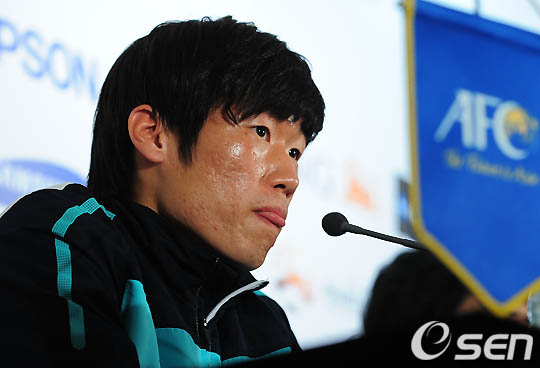 박지성이 기자회견중 입술을 적시고 있다. /rumi@osen.co.kr