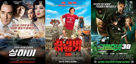 이런 가운데 거대한 스케일을 자랑하는 할리우드 블록버스터 영화들 역시 이 시기에 개봉, 설 극장가 전쟁에 뛰어들 전망이어서 귀추가 주목된다. 존 쿠삭, 공리, 주윤발, 와타나베 켄 등 세계적인 배우들이 총 출동한 영화 ‘상하이’를 비롯해 ‘걸리버 여행기’, ‘그린호넷 3D’ 등 각기 다른 매력을 지닌 블록버스터 영화가 개봉을 앞두고 있어 극장을 찾은 관객들이 행복한 고민에 빠질 것으로 예상된다.
