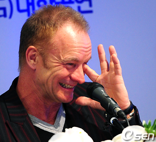 스팅이 질문에 답을 하며 미소짓고 있다. /jpnews@osen.co.kr