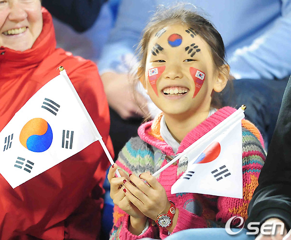 한 어린이가 태극기로 도배를 하고 응원을 하고 있다. /rumi@osen.co.kr