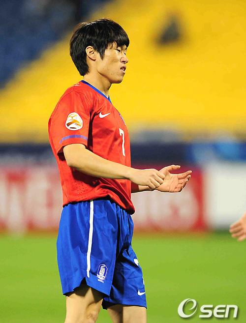 전반 박지성이 슈팅이 골키퍼에 걸리자 아쉬워 하고 있다. /rumi@osen.co.kr