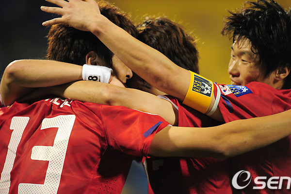 전반 40여분 구자철이 골을 넣고 동료들과 기쁨을 나누고 있다. /rumi@osen.co.kr