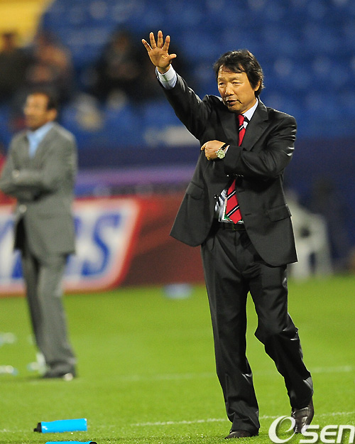 전반 조광래 감독이 구자철의 골에 기쁨을 표시하고 있다. /rumi@osen.co.kr