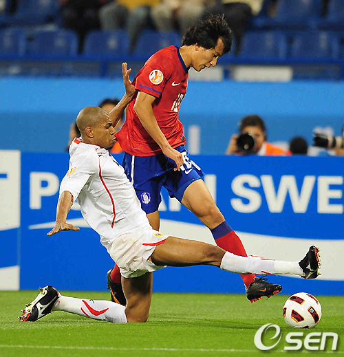 대표팀은 전반 초반 풀백 차두리와 측면 미드필더 이청용이 연계 플레이를 선보이며 오른쪽 측면을 지배했다. 이청용과 차두리는 번갈아 가며 날카로운 크로스로 다른 공격수들을 지원했다. 특히 전반 24분 이청용의 패스를 받은 구자철이 박스 오른쪽에서 수비수 두 명을 제치고 날린 슈팅은 골키퍼가 간신히 걷어낼 정도로 위협적이었다.