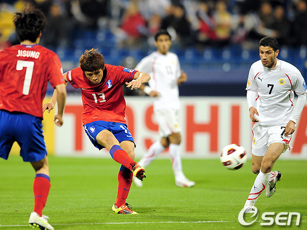 쉬지 않고 전반 내내 바레인을 두들긴 대표팀은 전반 39분 구자철의 슈팅으로 포문을 열었다. 중원에서 기성용이 빠르게 문전으로 밀어 넣어준 것을 구자철이 받아 오른발 슈팅으로 연결, 골대를 흔들었다. 상대 수비수 압둘라 마주키를 맞고 들어가기는 했지만, 그러지 않았더라도 충분히 득점으로 연결될 슈팅이었다.