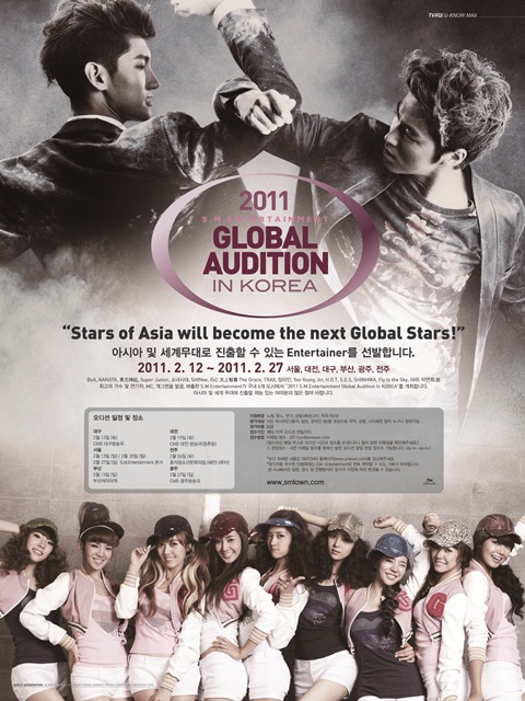 보아, 강타, 동방신기, 슈퍼주니어, 소녀시대, 샤이니, 에프엑스, 아라, 이연희 등을 발굴, 스타로 키운 SM엔터테인먼트가 대규모 전국 오디션 ‘2011 S.M.엔터테인먼트 글로벌 오디션 인 코리아’를 개최한다.