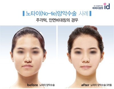 노타이양악수술은 기존의 양악수술법과 별반 다르지 않다. 다만 숙련된 전문의가 양악수술을 집도하기 때문에 수술 후 ‘악간고정’을 하지 않아도 되는 결과물이 만들어졌다. 악간고정은 수술 후 절골했던 뼈가 아물도록 하기 위해 한동안 입을 벌릴 수 없도록 위아래의 치아를 묶는 것이다. 노타이(No-Tie)양악수술은 묶지 않는다 하여 붙여진 이름이다. 입을 벌릴 수 있어 숨쉬고, 먹고, 말하는 데 지장이 없기 때문에 환자들의 회복 기간이 훨씬 편안해졌다.