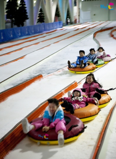겨울철 아이들에게 인기 좋은 여행지는 단연 눈썰매장. 추운 날씨로 눈썰매장을 찾을 엄두가 나지 않는다면 이들에게 안성맞춤인 곳은 바로 국내 유일의 실내눈썰매장이다. 한쪽에서는 스키와 보드를 즐길 수 있고 전용 슬로프에서 눈썰매를 안전하게 즐길 수 있어 벌써부터 일평균 500명 이상의 고객들이 방문하고 있다. 총 6개의 라인으로 구성된 눈썰매 전용 슬로프는 빠른 속도감과 중간에 휘어지는 곡선 코스의 짜릿함 때문에 아이는 물론 어른들에게도 큰 재미를 선사한다. 3인용 튜브형 눈썰매는 가족단위 방문객들에게 인기다. 단 스키·보드는 매주 월요일 휴장한다.