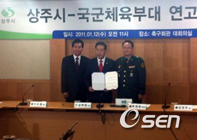 상주시는 12일 오전 서울 신문로 축구회관에서 국군상무부대와 공식 협약식을 가졌다.