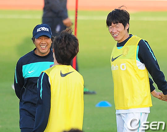 조광래 감독과 박지성 이청용이 환하게 웃으며 얘기를 나누고 있다./rumi@osen.co.kr