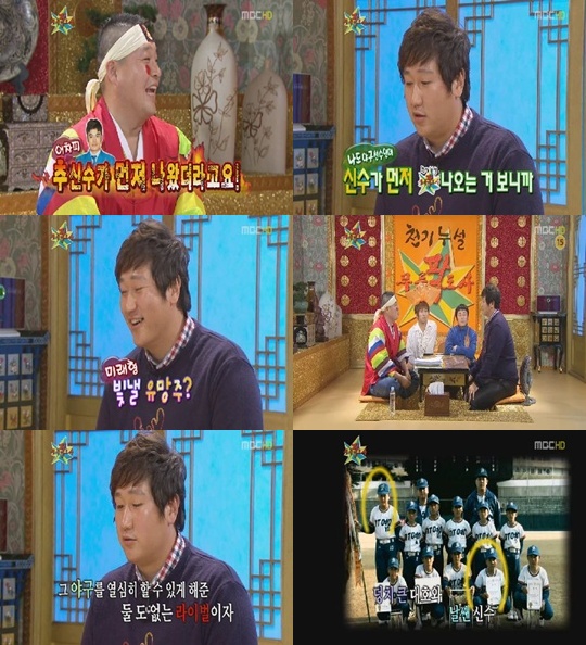 이날 이대호는 초반부터 추신수에 대해 미묘한 라이벌 의식을 표출했다. “‘무릎팍도사’로 제일 먼저 예능에 나가겠다고 했는데 추신수가 먼저 나갔다”고 말문을 연 이대호는 “2009년에도 ‘무릎팍도사’에 한번 출연하려고 했는데, 이종범 선배님이 먼저 나가셨고 2010년 나오려고 했는데 추신수가 먼저 나왔다”고 섭섭함을 드러냈다.