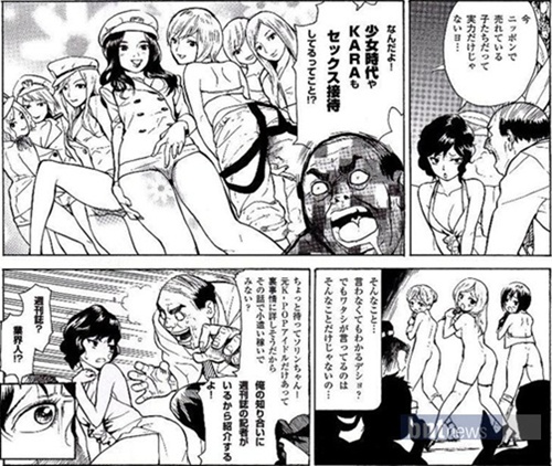일본 만화에 걸그룹 소녀시대와 카라가 성접대를 하는 듯 한 내용이 묘사돼 파문이 일고 있다.