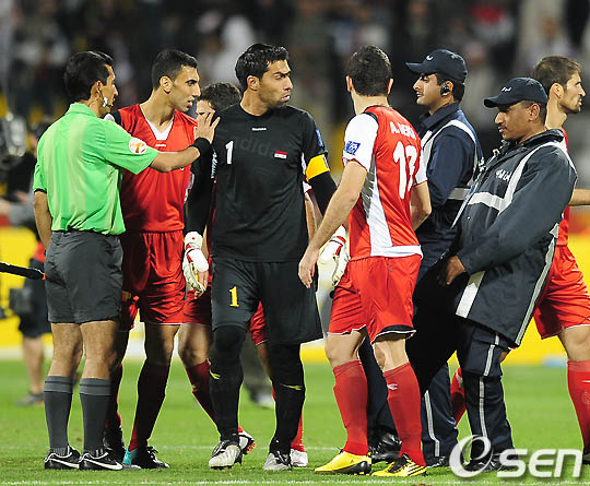 경기를 마치고 시리아 선수들이 토르키 모흐센 주심에게 계속 항의를 하자 경찰들이 뛰어오고 있다. /rumi@osen.co.kr