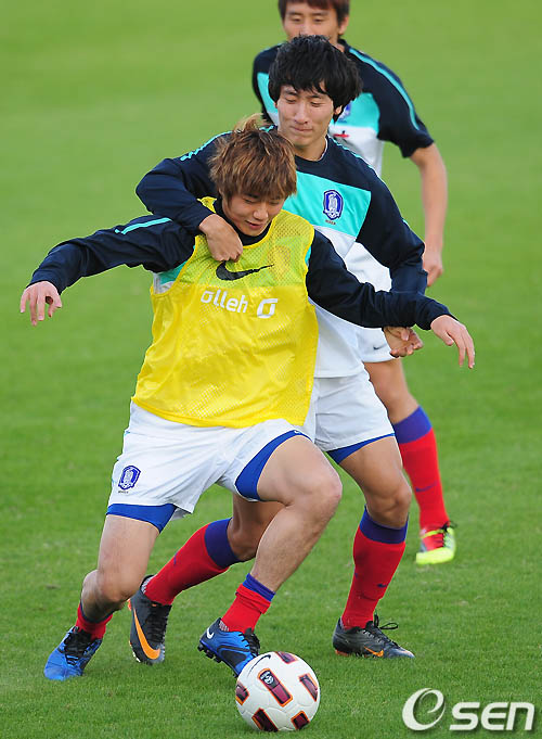 바레인전서 구자철(제주)이 앞선에 서고 이용래(수원)와 기성용(셀틱)을 밑의 꼭지점에 두는 삼각형을 만들었다면 이날 훈련서는 구자철과 이용래가 앞에 서고 기성용이 수비형 미드필더를 맡는 '역삼각형' 으로 미드필더를 세웠다.