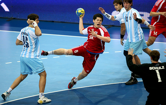 대회 전 치른 프랑스 4개국 대회에서 아르헨티나를 완파했던 한국은 이날 리드를 지키지 못하면서 아쉽운 무승부를 기록했다. 이재우(32)와 박중규(28. 이상 두산)는 각각 9골, 6골을 넣으면서 공격을 주도했다.