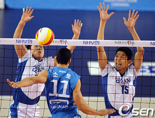 삼성화재가 15일 낮 천안 유관순체육관에서 열린 2010~2011 NH농협 V리그 현대캐피탈과 경기에서 세트스코어 3-0(25-20 25-18 25-23)으로 승리했다.