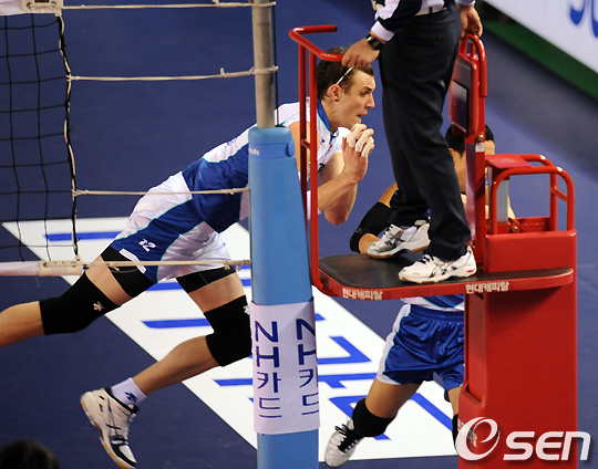 삼성화재가 15일 낮 천안 유관순체육관에서 열린 2010~2011 NH농협 V리그 현대캐피탈과 경기에서 세트스코어 3-0(25-20 25-18 25-23)으로 승리했다.