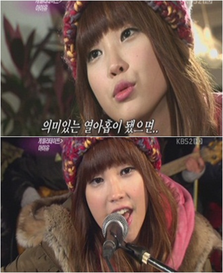 한편 '좋은 날'로 각종 음원차트와 가요프로그램 1위를 휩쓸며 '대세'라 불리며 정상에 선 아이유는 이번 주 SBS '인기가요'를 마지막으로 활동을 마감하며 당분간 KBS 2TV '드림하이'의 촬영에 매진할 예정이다.