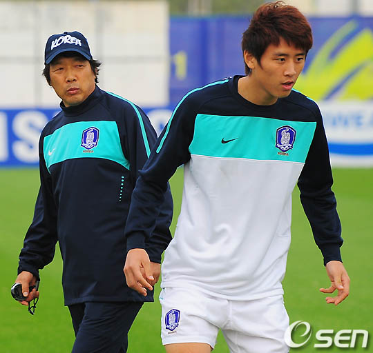 조광래 감독이 구자철의 훈련하는 모습을 바라보고 있다./rumi@osen.co.kr
