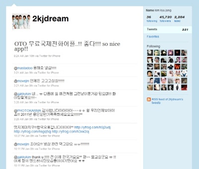 인기가수 SS501의 멤버 김규종 씨가 트위터에 무료국제전화 어플인 오티오(OTO)를 추천해 화제가 되고 있다. 그는 트위터에 2kjdream란 아이디를 사용해, ‘OTO 무료국제전화어플..!! 좋다!!! so nice app!!’이라고 사용소감을 밝혔다. 같은 멤버 허영생 씨 역시 ‘ㅋㅋ해외전화가 공짜라니~~대박! 세상 좋아져써~~~ㅋㅋㅋ’ 라고 글을 남기며 오티오(OTO) 서비스에 대한 만족감을 드러냈다.