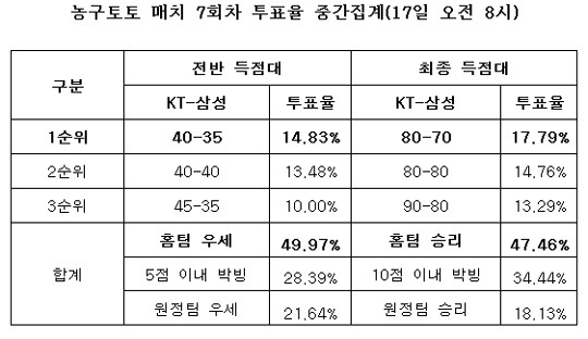 2010-2011시즌 농구토토 매치 7회차 투표율 중간집계 결과