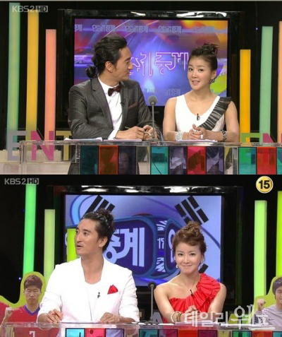 [데일리웨프/OSEN=김윤선 기자] 발 빠른 연예가 소식을 알려주는 연예 뉴스의 두 MC 이시영과 송지효의 의상이 연신 화제가 되고 있다.