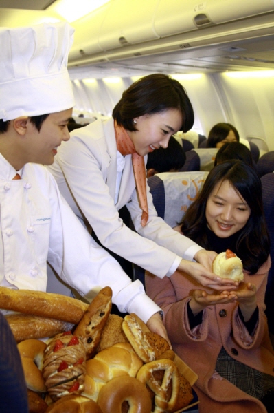 [이브닝신문/OSEN=정은진 기자] 제주항공은 파리바게뜨와 손잡고 매월 ‘이달의 빵’을 선정해 둘째, 넷째주 금요일에 출발하는 인천~홍콩, 인천~마닐라, 인천~방콕 노선 항공편 기내에서 제공한다고 밝혔다. 제주항공은 14일 기내 서비스를 개시했으며 오는 21일 동남아 노선 승객들에게 빵을 나눠 줄 예정이다. 사진제공=제주항공