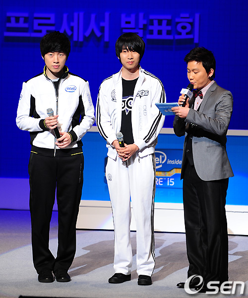 프로게이머 임요환과 이윤열이 스타크래프트2 매치 전 인터뷰를 하고 있다. /sunday@osen.co.kr