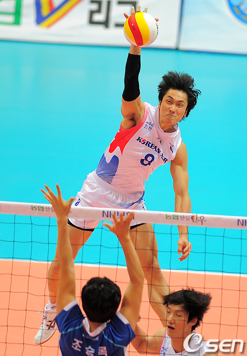 신영철 감독이 이끄는 선두 대한한공은 18일 구미 박정희체육관서 열린 NH농협 2010-2011 V리그 3라운드 경기서 김학민이 19점을 올리는 활약에 힘입어 LIG손해보험에 세트 스코어 3-0 (25-21 27-25 25-18)으로 승리했다.