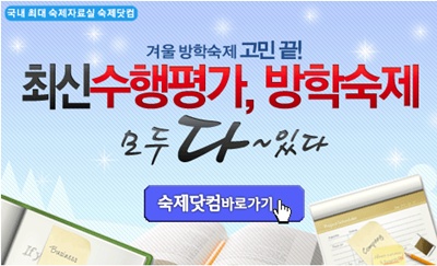 국내 최대 숙제자료실 숙제닷컴(http://www.sukze.com)에서는 일기쓰기와 겨울방학숙제에 활용되는 독후감, 기행문, 가족신문, 영어일기, 과학탐구 등의 숙제 자료를 정기적으로 업데이트 하여 아이들의 겨울방학숙제에 도움이 되는 자료를 제공하고 있다. 다양한 자료를 통해 아이들 숙제와 일기쓰기뿐만 아니라 부모의 지도방향에도 도움을 준다.