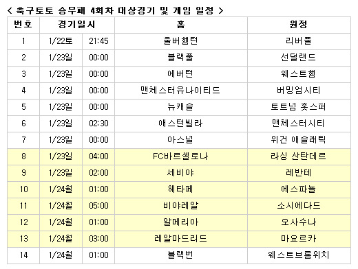EPL 8경기 및 라리가 6경기 등 총 14경기 대상. 오는 22일(토) 오후 9시 35분 발매 마감