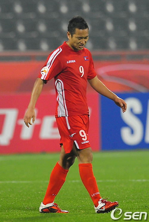 경기를 마치고 북한 정대세가 얼굴을 찡그리며 아쉬워하고 있다. /rumi@osen.co.kr