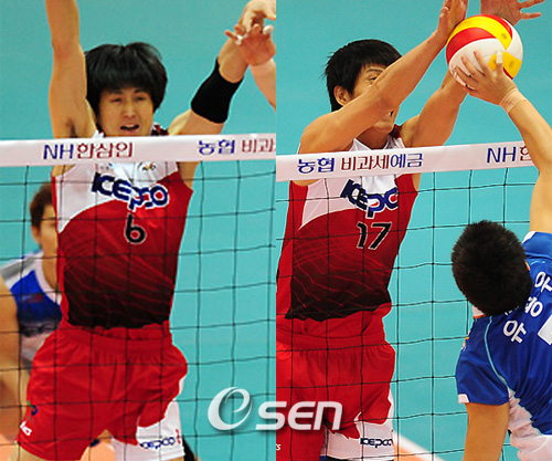 올 시즌 방신봉은 세트당 블로킹 0.962개를 올리며 당당히 1위에 올라 있고 하경민 또한 세트당 0.673개로 이 부문 4위를 마크하고 있다.