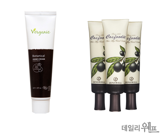 <사진. 베르가닉_보태니컬 핸드크림(왼쪽), 제니스웰_올리브 실키 핸드크림>