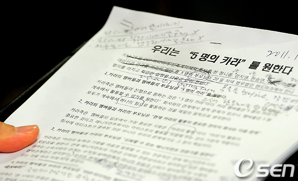 이어 "하지만 멤버들이 지적하는 문제들이 해결됐을 때 가능한 것"이라며 "멤버들은 5인 카라를 원한다. 카라에 대한 애착이 강하다. 이들의 활동이 중요하고 멤버간의 불화는 전혀 없다"라고 불거진 불화설을 위축했다.