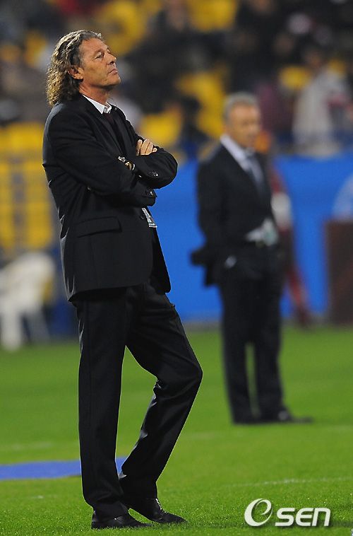 후반 메추 감독이 침울한 표정으로 경기를 지켜보고 있다. /rumi@osen
