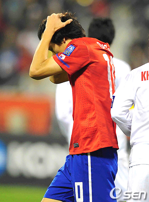 후반 결정적인 헤딩슛이 골키퍼 정면으로 가자 지동원이 아쉬워 하고 있다. /rumi@osen.co.kr