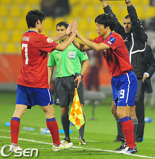연장 후반 박지성이 염기훈과 교체되고 있다. /rumi@osen.co.kr