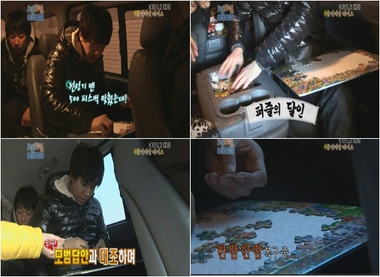 터널의 어둠 속에서도 꿋꿋이 퍼즐 맞추기에 몰입하던 이승기는 "전성기 때는 500피스씩도 가능했었는데.."라며 탄식하기도. 제작진은 '퍼즐의 달인'이라며 '한땀한땀 복구중'이라는 자막으로 시청자들의 웃음을 자아냈다.