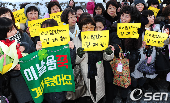 팬들이 전역식을 마치고 나올 배우 김재원을 기다리고 있다. /sunday@osen.co.kr