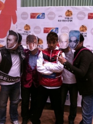YG 엔터테인먼트 관계자는 "매니저들이 미리 준비해둔 멤버들의 얼굴이 찍힌 가면을 쓰고, 직접 빅뱅 멤버들이 입던 의상을 입었다.. 옷이 잘 맞지 않는 사람도 있었지만 승리를 응원하기 위해 재미있게 준비했다"라고 전했다. 승리 역시 이런 재치있는 독특한 지원사격에 고마움을 전했다는 후문이다.